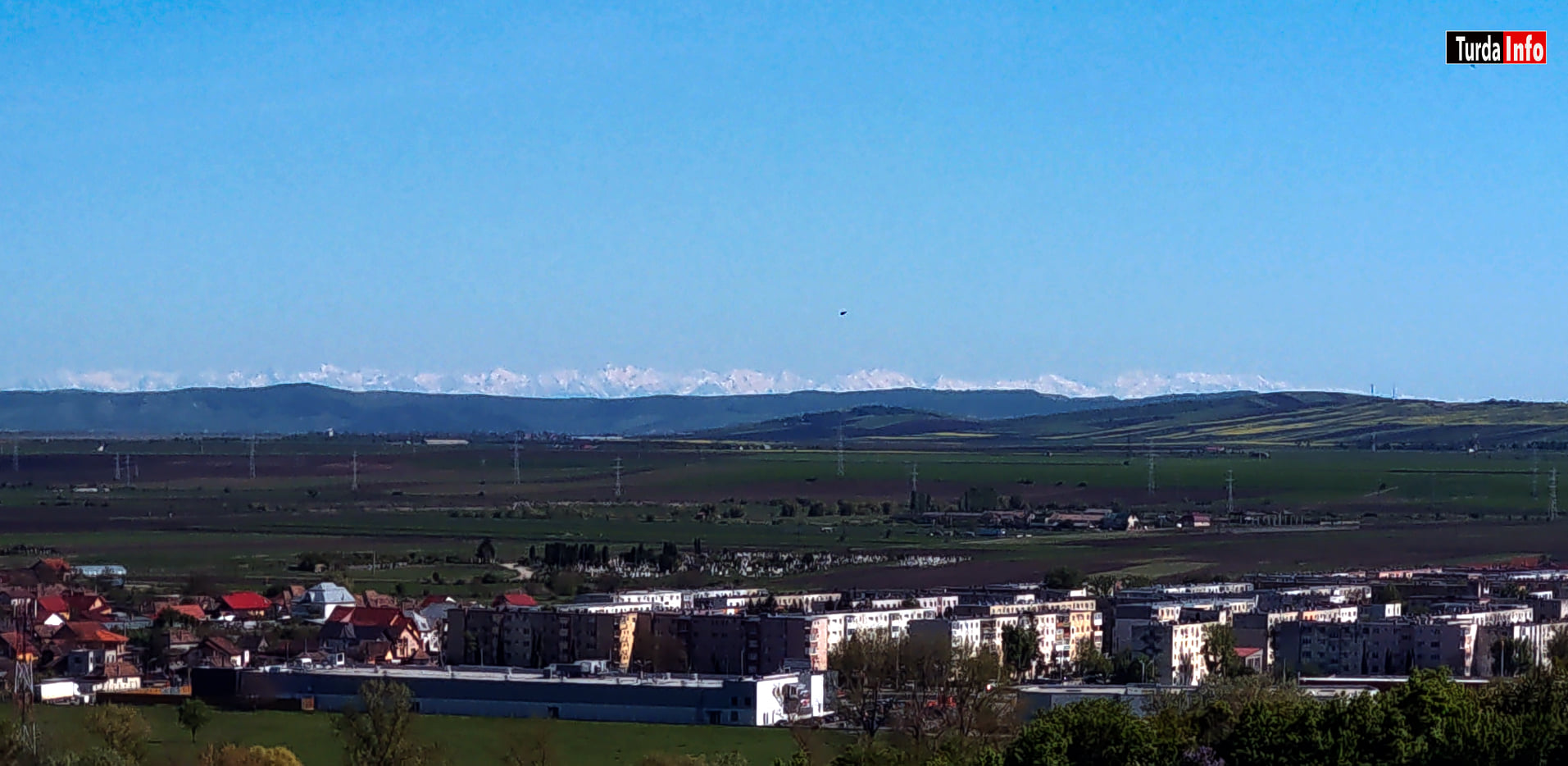 De pe dealul dinspre Băile Sărate Turda linia superbă a Carpaților Meridionali a fost vizibilă chiar dacă distanța până acolo este de peste 130 de km în linie dreaptă, transmite turdainfo.ro.
