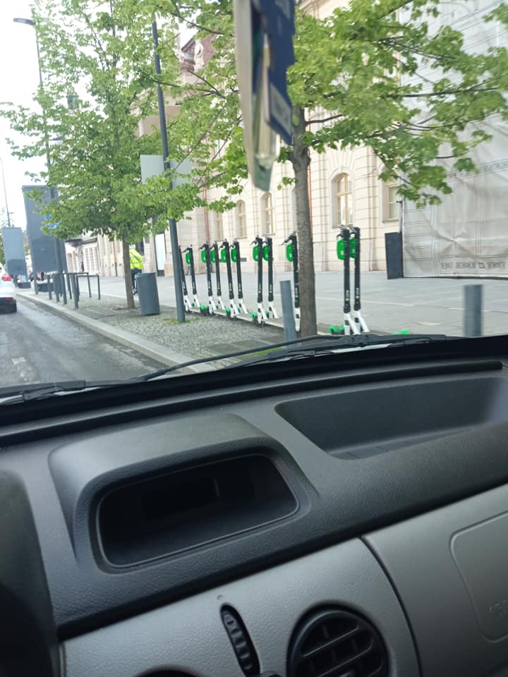 Pe grupul de Facebook INFO TRAFIC CLUJ, Stelian Feurdean a scris: „Pai ce facem, domnul Boc? De când a ajuns trotuarul, parcare pentru firmele care închiriază trotinete, sau la ei nu este valabilă fraza cu spatiu public?