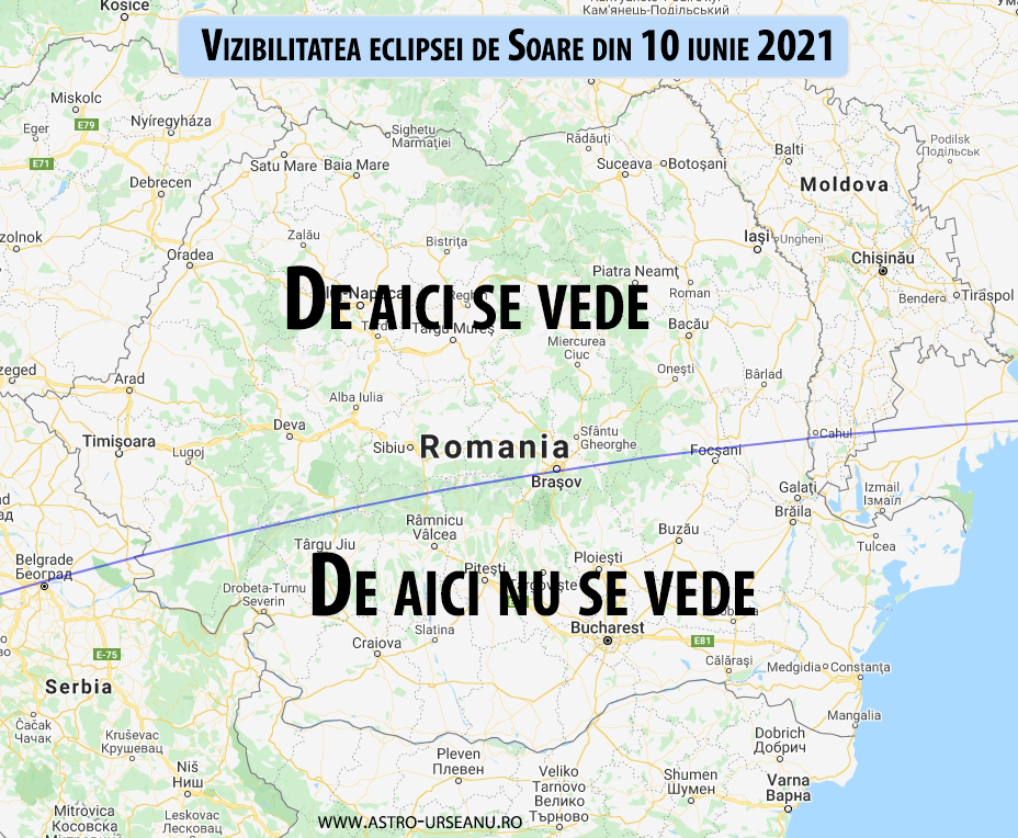 Eclipsa nu se vede din toată țara și, pentru început, iată o diagramă cu locurile de unde se vede și de unde nu”, au transmis reprezentanții observatorului.
