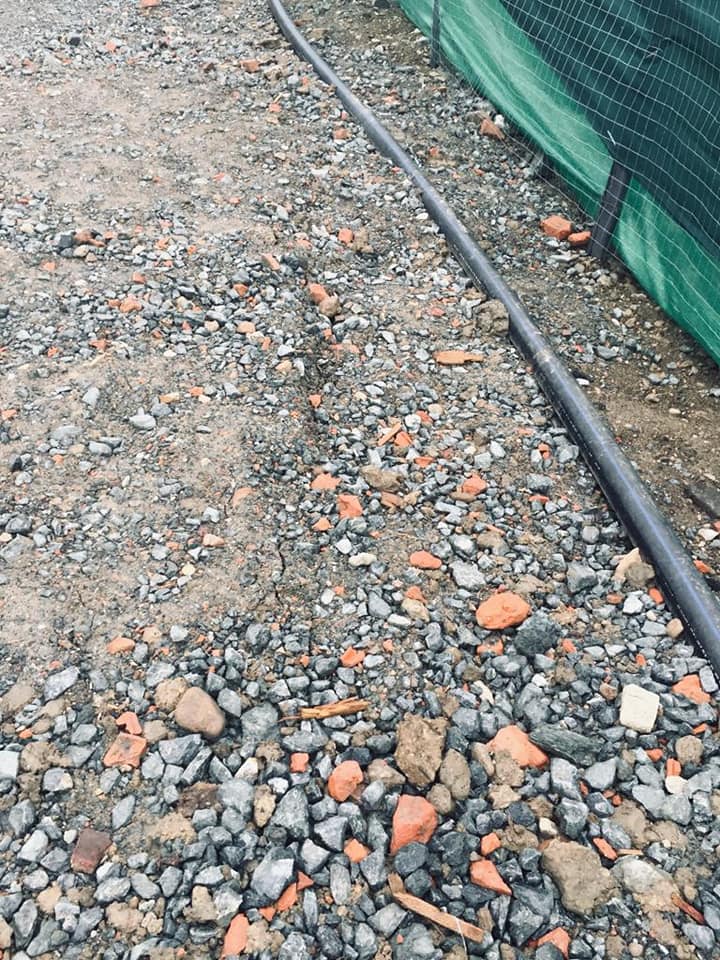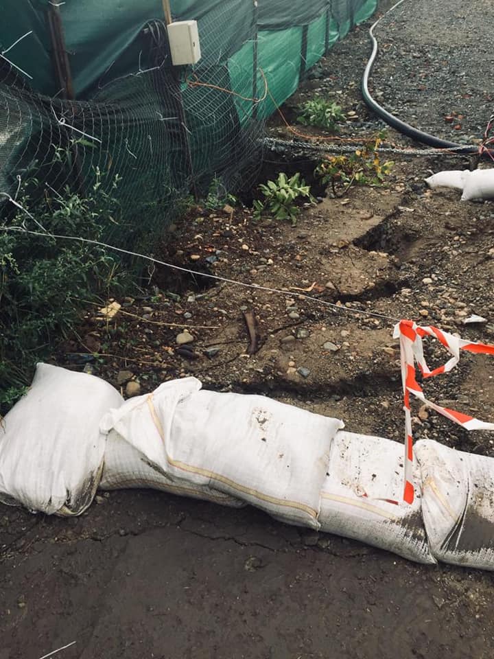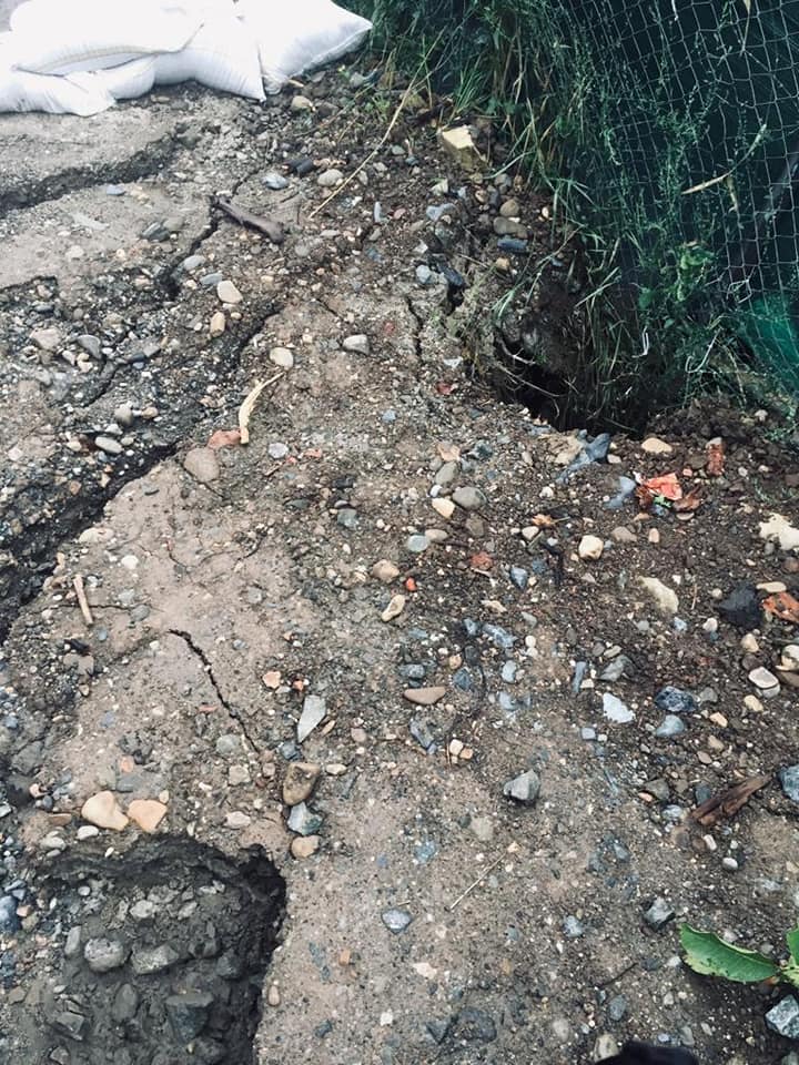 Pamantul surpat de pe strada iese pe sub stalpii proptiti sa sustina un deal!”