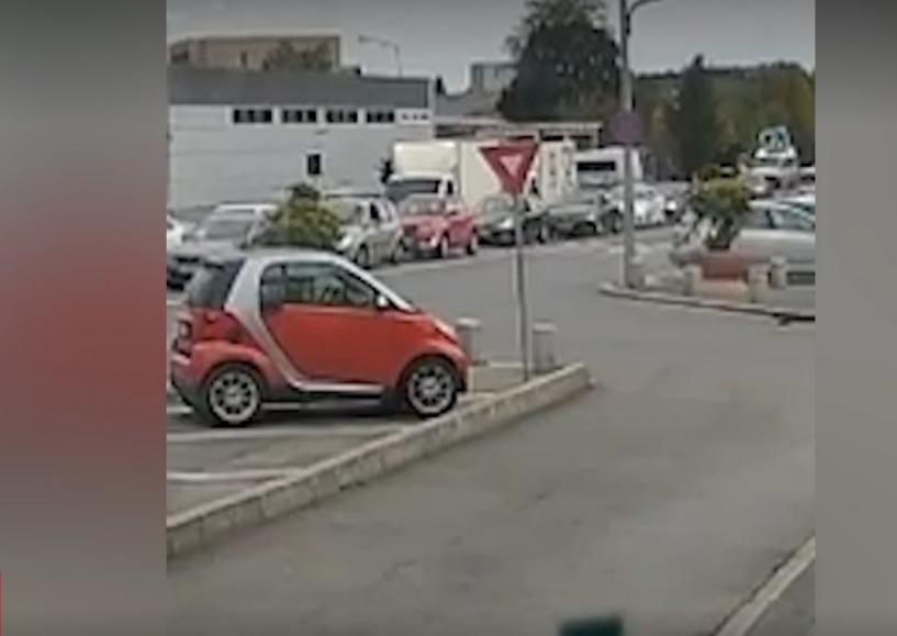 Imaginile arată cum femeia care împingea căruciorul traversa pe trecerea de pietoni, a parcurs unul din sensurile de circulație printre mașinile oprite, iar când a ajuns pe sensul opus, după separator, a fost acroșată de un autoturism BMW care venea în viteză.