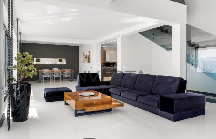 Cu o suprafață utilă de 437 mp pe trei niveluri, pe un teren de 3.713 mp, proprietatea vine cu detalii care sună mai degrabă a resort privat decât a casă: piscină infinity, terasă cu vedere amplă asupra orașului, cinematograf privat și zonă de wellness. Prețul cerut: 5.995.000 euro, la care se adaugă TVA de 21%.