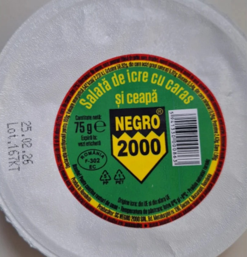 Potrivit ANSVSA, SC Negro 2000 SRL recheamă produsul Salată de icre cu caras şi ceapă 75 g, lot 167KT, cu data expirării 25.02.2026.