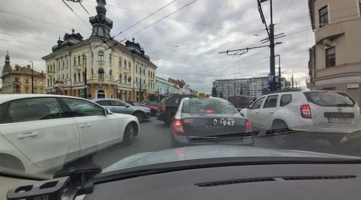 Intesecția din Mihai Viteazul a fost un haos în această dimineață. Șoferii au forțat intrarea în intersecție blocând astfel accesul celorlalte mașini. „Ce il sperie pe clujean? R: ploaia… sau poate era…