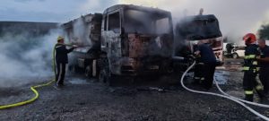 Două autobasculante au fost făcute scrum, după ce au luat foc, într-o parcare din localitatea Răscruci, ieri seară. Două autospeciale pentru stins incendii, din cadrul ISU Cluj și una din cadrul SVSU…