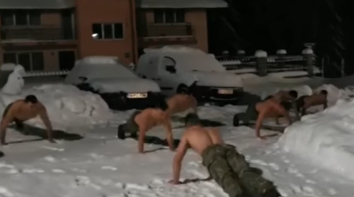 Militarii din batalionul 136 Geniu “Apulum”, din Arieșeni, au ieșit la înviorare pe ger. Inspirat de antrenamentul trupelor speciale, militarii au făcut flotări în zăpadă, genuflexiuni, abdomene pe ger. „Înviorare în tabăra…