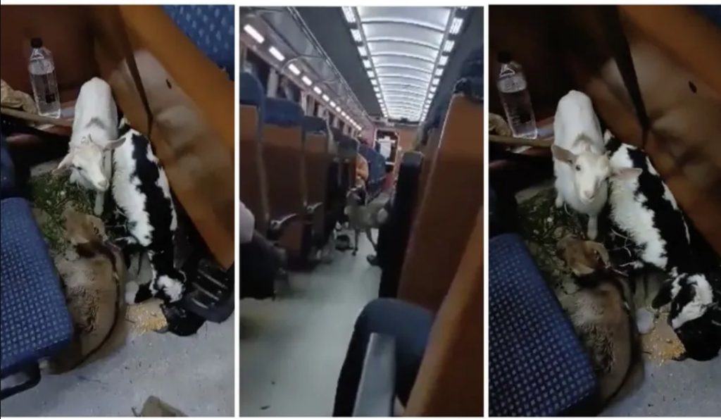 Situație de râsul-plânsul, într-un tren care a plecat de la Deva către București. Mai multe capre au fost filmate în vagonul de călători, pe traseul de zece ore, scrie Antena 3 Dacă…