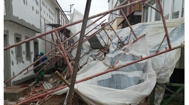 Schelele de pe un șantier de pe strada Sub Cetate din Florești au căzut astăzi peste blocul vecin. Schelele nu erau ancorate. „Acum pe subcetate! Domnilor de la primărie ați verificat organizare…